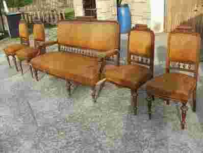 OKAZJA !!! ORZECHOWA SOFA + 4 KRZESŁA EKLEKTYCZNE