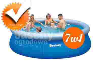Zestawy basenowe 7 w 1 zawdzięczają swoją popularność profesjonalnemu doborowi akcesoriów niezbędnych do utrzymania wody basenowej w czystości. Podobnie jest z propozycją od firmy Bestway i zbiornikiem rozporowym o wymiarach 366 x 91 cm wykonanym z 3-warstwowego PVC. Dmuchany kołnierz poza funkcją techniczną, z powodzeniem pełni rolę komfortowego oparcia.