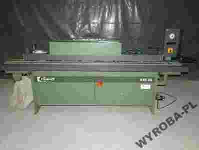 Grubość okleiny od 0,4 do 3mm Wysokość okleiny od 12 do 45mm Posuw: 9m/min Podajnik na klej- Walec Długość płyty min.150mm przy okleinie od 0,4mm do 0,8mm Długość płyty min.250mm przy okleinie od 0,8mm do 3mm Szerokość płyty min.55mm Grubość płyty od 10 do 40mm 1: Agregat klejący Magazynek na rolki obrzeża, z nożem tnącym 2: Rolka prasowania wstępnego i jedna Rolka prasowania ostatecznego 3: Agregaty kapujące - Piłki ustawne pod kątem 4: Agregaty do frezowania obrzeża narówno i radiusu ustawne pod kątem do 15° 5: Agregaty polerujące Zasilanie 5,8Kw Cisnienie powietrza 6 Atmosfer Własny odciąg odpadów Kruciec odciągu 120mm Długość maszyny 2800mm Szerokość maszyny 1000mm Wysokość maszyny 1370mm Waga ca. 600 Kg Kabina dzwiekochłonna Wysuwana listwa - podpierająca szeroki element