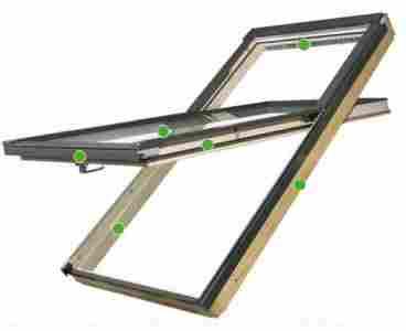 Jest to okno o podwyższonej osi obrotu co oznacza że otwiera się mniej więcej na wysokości 3/4 ramy, a nie standardowo w połowie. Zawiasy podniesione są tutaj o około 20 cm w górę w stosunku do tradycyjnie otwiernych okien Fakro. Sprawia to że nawet wysokie osoby mogą podejść do krawędzi okna nie zawadzając o nie.