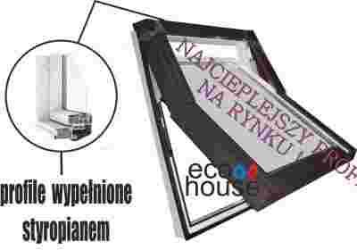 OKNO DACHOWE O PODWYŻSZONEJ OSI OBROTU + KOŁNIERZ UNIWERSALNY+ WENTYLACJA(mikro-uchył) +AKCESORIA MONTAŻOWE +PAKIET 3 USZCZELEK +SZYBA HARTOWANA + PROFIL WYPEŁNIONY STYROPIANEM !!!