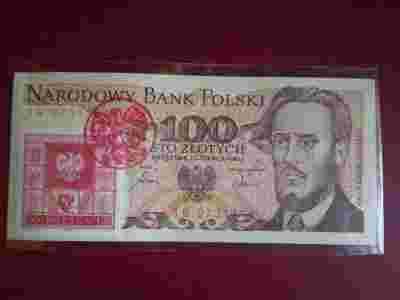 Okolicznościowy banknot ze znaczkiem i stemplem.