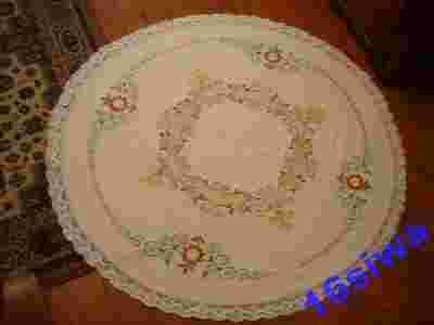 Okrągły ręcznie haftowany obrus.
