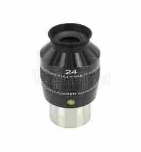 Wysokiej klasy okular Explore Scientific 24 mm w oprawie 2" z ultra szerokim 82° polem widzenia oferuje niesamowite wrażenia obserwacyjne. Do jego stworzenia zastosowano najnowsze komputerowe metody projektowania celem zoptymalizowania jego użyteczności. Projekt konstrukcji opiera się na 7 elementowym systemie soczewek wykonanych z nisko dyspersyjnego, wysokiej jakości szkła, w całości pokrytego wielowarstwowymi opatentowanymi powłokami EMD (Enhanced Multilayer Deposition). Powłoki te zwiększają transmisję światła, zapewniają najwyższy kontrast i ostrość oraz płaski obraz w całym szerokim 82 stopniowym polu widzenia. Dodatkowo krawędzie soczewek zostały wyczernione celem dalszego poprawienia kontrastu. Okulary te posiadają azotowe wypełnienie czyniące je w 100% wodoodpornymi. Przeciwdziała to wewnętrznym zamgleniom tworzącym się wewnątrz okularów oraz ułatwia ich czyszczenie, ponieważ płynne środki czyszczące nie są w stanie dostać się do wewnętrza układu optycznego. Zabezpiecza to okulary i gwarantuje ich długą żywotność. Dodatkowo okulary tej serii posiadają miękką odchylaną muszę oczną zapewniającą komfort prowadzenia obserwacji.
