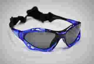 Cobalt Specs posiada niebieską ramkę z szarymi szkłami polaryzacyjnymi.