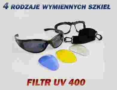 OKULARY GOGLE MOTOR ROWER NARTY FILTR UV + 4 szkła