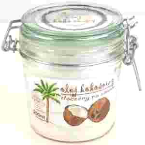 Olej kokosowy tłoczony metodą „na zimno” NIERAFINOWANY to jedyny olej roślinny, który w temperaturze około 25 C ma stałą postać.