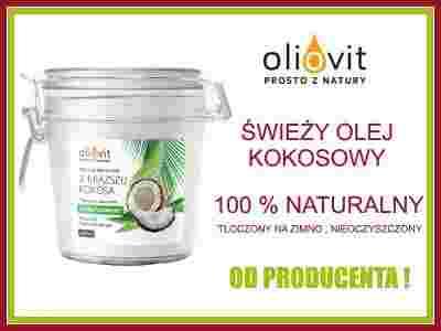 OPIS PRODUKTU : Olej OLIOVIT z miąższu kokosa jest olejem dziewiczym, nieoczyszczonym. Dzięki metodzie tłoczenia na zimno zachowuje on w 100% naturalny skład jaki oferuje nam roślina. Ponadto występujące w nim kwasy tłuszczowe pozostają w niezmienionej budowie , co odróżnia go od olejów rafinowanych.