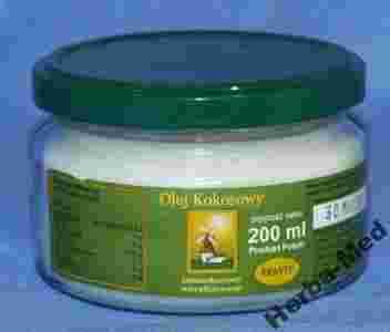 Jest to jedyny olej roślinny stały ( w temperaturze poniżej 20 stopni ). Skład jego jest zbliżony do tłuszczu kakaowego i w ustach szybko się topi, sprawiając wrażenie chłodu. Ostatnie doniesienia naukowe wskazują, że olej kokosowy odżywia i wzmacnia mięśnie, szczególnie mięsień sercowy, nie obciążając wątroby. Doskonale oczyszcza organizm z różnych toksyn rozpuszczalnych w tłuszczach. Olej ten produkowany w naszym zakładzie z surowców dobrej jakości charakteryzuje się dobrymi walorami sensorycznymi.