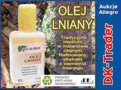 Do celów artystycznych olej lniany był stosowany prawdopodobnie już od czasów starożytnych, głównie do zabezpieczania powierzchni malowideł i polichromowanych rzeźb. Pierwsze próby wykorzystywania oleju jako spoiwa farb były przeprowadzane już we wczesnym średniowieczu, jednak ze względu na niezrozumienie wymagań procesu oksydacji (a także używanie mieszanek oleju lnianego i olejów nieschnących, jak oliwy z oliwek) zostały zarzucone. Dopiero rozwój malarstwa temperowego doprowadził do wykorzystania właściwości oleju lnianego, początkowo jako ważnego składnika emulsji temperowej. Naturalnym krokiem rozwoju była rezygnacja z fazy wodnej w spoiwie temperowym i użycie czystego oleju lnianego jako medium. Pierwsze udane próby malarstwa „czysto” olejnego przypisuje się braciom Van Eyck (XV w.) jednak ich wkład w rozwój tej techniki może być anegdotyczny. W każdym razie na przełomie XV i XVI w. sztalugowe malarstwo olejne zwłaszcza w Holandii i Włoszech jest już dominujące wobec wcześniejszych, wodnych technik. Obecnie olej lniany jako spoiwo i medium w malarstwie powoli traci na znaczeniu na rzecz materiałów syntetycznych (np. roztworów metakrylanów), ale z pewnością będzie jeszcze bardzo długo używany.