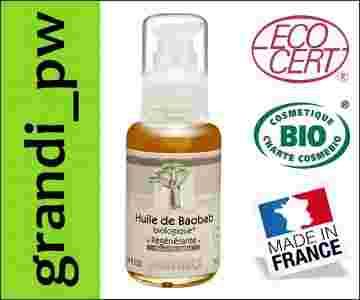Olejek z BAOBABU BIO organiczny (Adansonia digitata seed oil)) z certyfikatem ECOCERT, oznaczony znakiem COSMEBIO. Wyprodukowany został ze starannie wyselekcjonowanych nasion drzewa baobabu i według ściśle określonych procedur gwarantujących wysoką jakość.