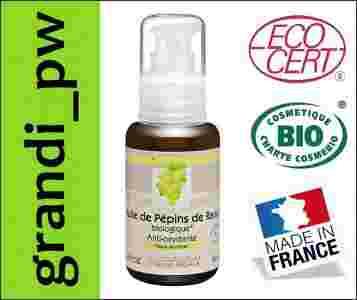 Olejek z pestek winogron BIO (Vitis vinifera seed oil) z certyfikatem ECOCERT, oznaczony znakiem COSMEBIO. Jest to olejek pozyskiwany z pestek starannie wyselekcjonowanych gatunków winogron i według ściśle określonych procedur gwarantujących wysoką jakość.