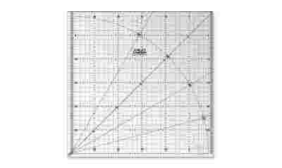 Model MQR - 30X30 to akrylowy, przezroczysty szablon o wymiarach 30x30cm i grubości 3mm, przeznaczony specjalnie do cięcia tkanin nożem krążkowym.