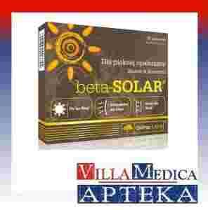 Beta-SOLAR® - to suplement diety stanowiący kompozycję aktywnych składników, zestawionych w trzy formuły. Pro Tan Blend zawiera w swoim składzie m. in. miedź, która pomaga w utrzymaniu prawidłowej pigmentacji skóry. Antiox-protect skin Blend to mieszanina naturalnych antyoksydantów: witaminy E, selenu i manganu, a także ekstraktu zielonej herbaty, które przyczyniają się do wzmocnienia ochrony organizmu przed stresem oksydacyjnym. Witamina C i cynk, będące składnikami Beauty skin Blend pomagają utrzymać dobrą kondycję skóry.