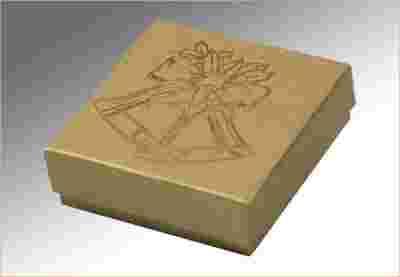 Opakowanie jubilerskie, ozdobne wykonane jest z wysokiej klasy kartonu, składające się z rdzenia kartonowego 700g, oklejane okleiną ozdobną 120 z świątecznym motywem naniesionym metodą hot printu. Istnieje możliwość wykonania tych opakowań z własnym logo na indywidualne zamówienie. Opakowanie wystawione do sprzedaży jest koloru karmelowego.