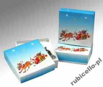 Opakowanie ozdobne wykonane z wysokiej klasy kardonu ozdobnego, dwuelementowe rozkładane od góry. Dodatkowo ozdobione świątecznym nadrukiem.
