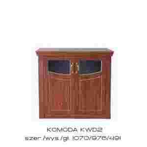 Duża pakowna komoda o wymiarach szer. 107 wys. 98 gł. 49 cm. Posiada dwoje drzwiczek z szybą u góry za którymi znajduję się pojemna przestrzeń przedzielona przez środek półką. Komoda jak i wszystkie meble systemu OPAL, wykonano w ciepłym, energetyzującym kolorze drewna kasztan, charakterystycznym poprzez swój rysunek słoi drzewnych z nieregularnymi, mniejszymi i większymi skupiskami słojów. Posiada dekoracyjne, metalowe uchwyty z charakterystyczną cyrkonia dodającą meblu uroku.