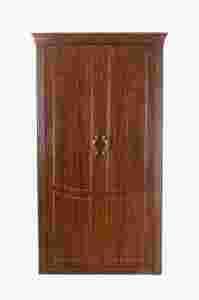 Pojemna szafa dwudrzwiowa o wymiarach szer. 108 wys. 194 gł. 57 cm. Posiada dwa otwierane na lewo i prawo fronty drzwiczek, za którymi kryje się półka u góry, przegroda ubraniowa z drążkiem do powieszenia. Szafa, jak wszystkie meble systemu meblowego OPAL, wykonana w ciepłym, energetyzującym kolorze drewna kasztan, charakterystycznym poprzez swój rysunek słoi drzewnych z nieregularnymi, mniejszymi i większymi skupiskami słojów. Posiada dekoracyjne, metalowe uchwyty z charakterystyczna cyrkonia dodającą meblu uroku.