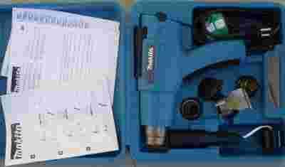 W skład sprzedawanego na tej aukcji zestawu wchodzi cały komplet, który widać na zdjęciach, a więc: opalarka, 4 dysze, wałek dociskowy, walizka, instrukcja obsługi (jęz. polski) i inne papierki.
