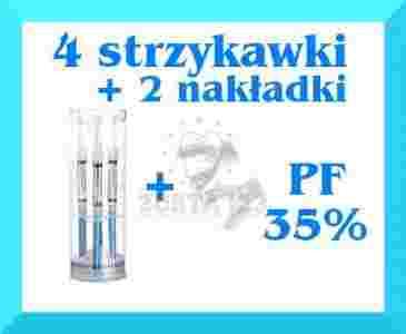 Zestaw 4 strzykawek żelu OPALESCENCE PF 35% o pojemności 1,2 ml każda + 2 termoutwardzalne nakładki do wybielania