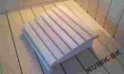 Zagłówek do sauny z listwami z zimnego afrykańskiego drewna abachi.