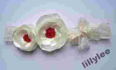 Opaska koronkowa z kwiatkami ecru rękodzieło