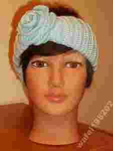 OPASKA NA GŁOWE USZY CIEPŁA Z RÓŻĄ KWIAT BŁĘKIT