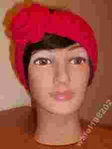 OPASKA NA GŁOWE WEŁNIANA RĘKODZIĘŁO KWIAT AMARANT