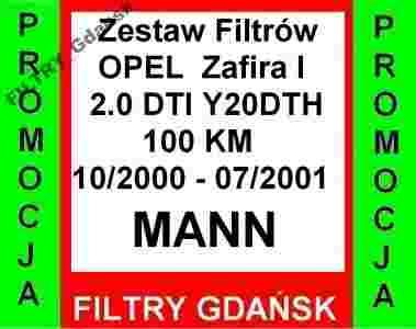 Przedmiotem dzisiejszej aukcji jest : ZESTAW FILTRÓW DO OPEL ZAFIRA 2.0DTI [1994] 16V Y20DTH W ROCZNIKU 10/2000 - 07/2001