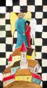 UROKLIWA PRACA Z TEMATEM MAGICZNEGO MIASTECZKA I STRÓŻUJĄCEGO W NIM ZAKOCHANYCH ANIOŁÓW