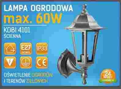 Oprawa ogrodowa Kobi 4101 idealnie nadają się do oświetlenia obiektów o oryginalnym stylowym charakterze .Obudowa wykonana z dobrej jakości stopów aluminium. Rodzaj zastosowanych materiałów powoduje że oprawa nie jest narażona na korozje.