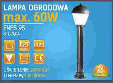 Oprawa ogrodowa Enes 95 idealnie nadają się do oświetlenia obiektów o oryginalnym stylowym charakterze .Obudowa wykonana z tworzywa sztucznego, klosz mleczny . Rodzaj zastosowanych materiałów powoduje że oprawa nie jest narażona na korozje.