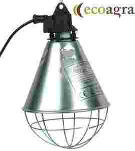 Oprawa promiennika do odchowu piskląt i dogrzewania kurcząt.Oprawa przeznaczona jest na żarówki i promienniki ze standardowym gwintem najczęściej spotykanym E27. Można do niej wkręcać wszystkie żarówki dostępne na rynku. Najlepiej sprawdzają się żarówki o mocy 175 WAT infrared.