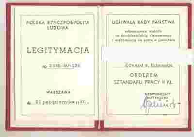 ORDER SZTANDARU PRACY- LEGITYMACJA- 1980