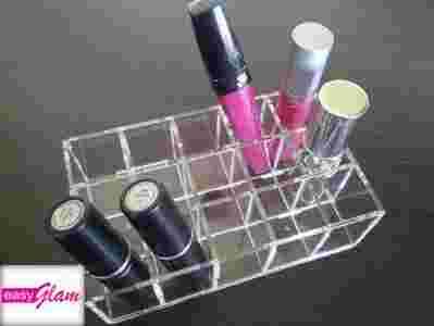Ten organizer pozwala oszczędzić czas! Koniec z szukaniem odpowiedniego koloru szminki, otwieraniem opakowań i sprawdzaniem. Ustaw je tak aby nazwa lub kolor były na górze, dzięki temu od razu znajdziesz wybrany kolor.