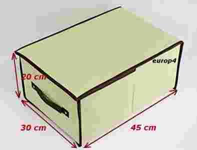 Duże pojemne i jednocześnie bardzo ładne składane pudełko, wykonane z grubej tkaniny. Pudełko jest bardzo łatwe i wygodne do utrzymania w czystości, po złożeniu zajmuje mało miejsca, jest odporne na przetarcia, wilgoć i zabrudzenia, można je przechowywać nie tylko w mieszkaniu ale też np. w garażu czy piwnicy.