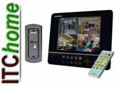 Nowoczesny kolorowy zestaw wideodomofonowy z systemem monitoringu przystosowany do samodzielnego montażu i przeznaczony do domu jednorodzinnego.