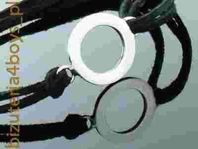 Bransoletka wykonana z naturalnego rzemienia oraz srebra najwyższej próby 0,925., potwierdzonej znakami probierczymi.