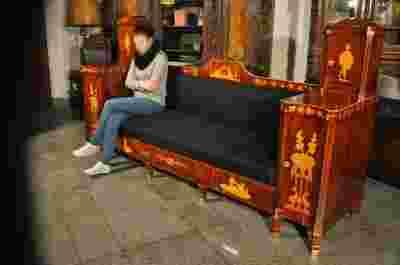 Mebel wykonano w warsztacie mistrzów – artystów stolarzy w Paryżu lub okolicach. Kształt inspirowany jest meblami warsztatu braci Adams, lub