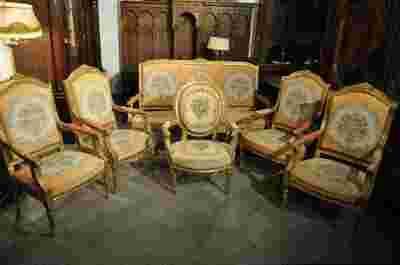 Oryginalny Empirowy komplet sofa + 4 duże fotele