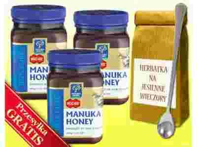 Oferowany miód posiada certifikat potwierdzający zawartość co najmniej 400 mg/kg metyloglioksalu (naturalnego związku działacącego antybakteryjnie), co czyni go bardzo silnym. Takie właściwości posiadają jedynie nieliczne miody pozyskiwane z kwiatów krzewu manuki, co czyni nasz miód tym bardziej wyjątkowym.