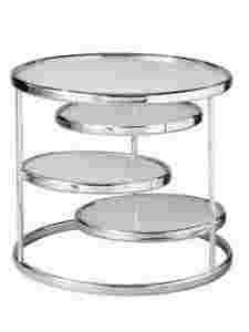 Stolik; chromowana stal; blaty wykonane z białego szkła powlekanego; trzy małe blaty są obrotowe; przybliżone wymiary W/S/D: 51/60/60 cm, grubość blatu 5 mm, STAN: idealny