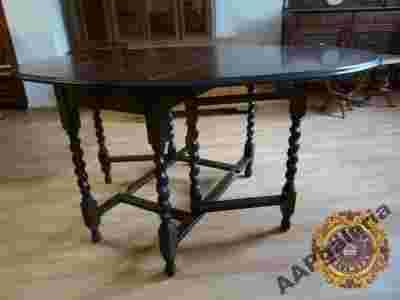 Blat stołu składa się trzech części które mogą tworzyć jedną całość , jest on położony na siedmiu warkoczowych kolumnach w dolnej części połączonych łącznikami