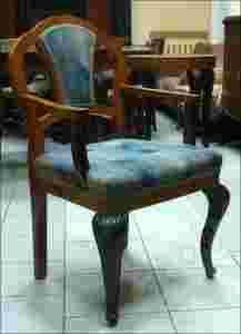Przepiękny, orzechowy fotel w wiedeńskim wydaniu. Mebel na pięknych, w ciemniejszej tonacji, dodatkowo zdobionych elementami snycerskimi, giętych nogach. Siedziska na sprężynach. Mebel wykonany na wzór XIX - wiecznych na początku XXw. W ofercie posiadamy również stół z krzesłami i jeszcze dwa fotele pokazane na ostatnim zdjęciu. Na życzenie klienta możemy wykonać zarówno renowację jak i usługę tapicerską. Stan: dobry+ (jak na zdjęciach)