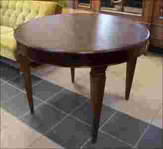 Niewielki orzechowy stół secesyjny na nogach w kształcie odwróconych ostrosłupów. Mebel zgrabny, który odnajdzie się w niemalże każdym pomieszczeniu.