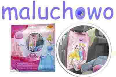 Osłona chroni tył fotela, a kolorowy wzór z ulubionymi postaciami z bajek Disney uprzyjemnia dziecku czas podróży.