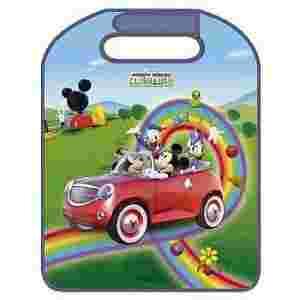 Osłona chroni tył fotela, a kolorowy wzór z ulubionymi postaciami z bajek Disney uprzyjemnia dziecku czas podróży.