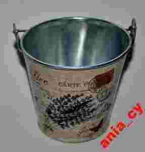 Osłonka na doniczkę - metalowa, wiadereczko wrzos