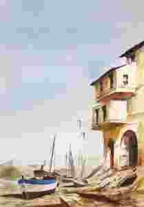 OSADA RYBACKA, ŁODZIE (100% AKWARELI)