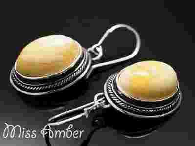 OWALNE kolczyki ~ BURSZTYN bałtycki MLECZNY
